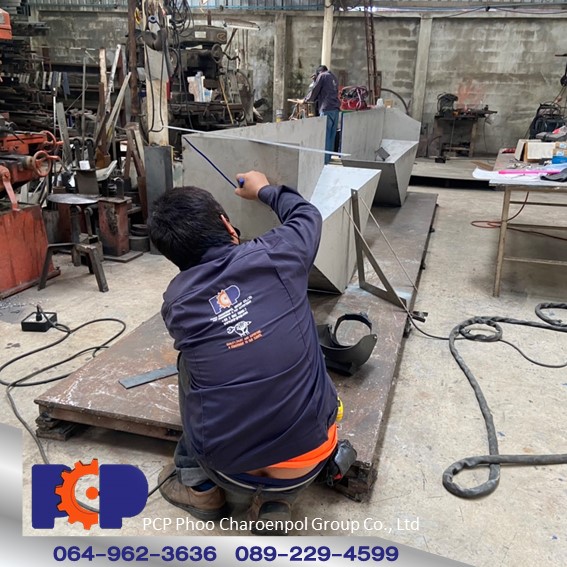 • เชื่อมประกอบขาตั้งเครื่องจักรใหม่ ทำโครงเหล็กตั้งฐานเครื่องจักร